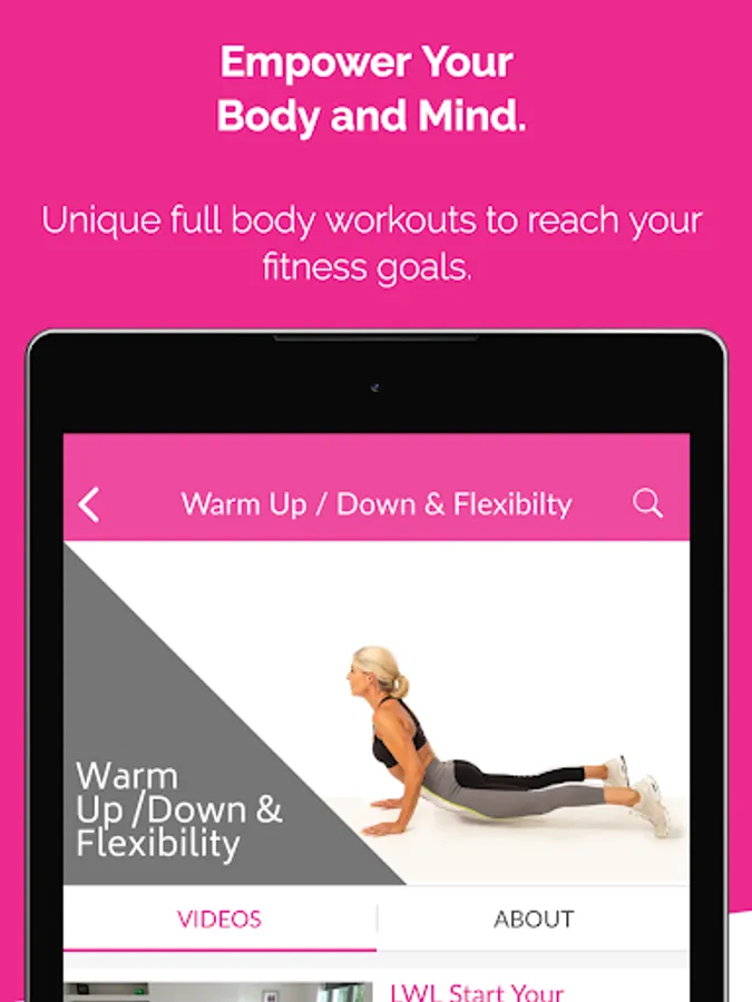 - All workouts including Full Body Workouts, Strengthen & Tone, Tabata & Cardio, Warm Up / Down & Flexibility and Best Form Tutorials.