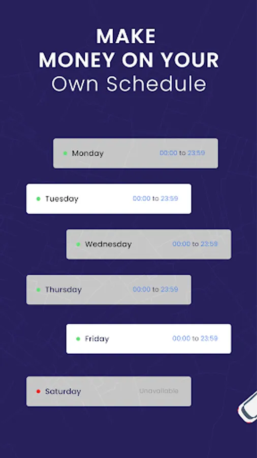 * Help people move around your city, and make money on your schedule and at your preferred rate.