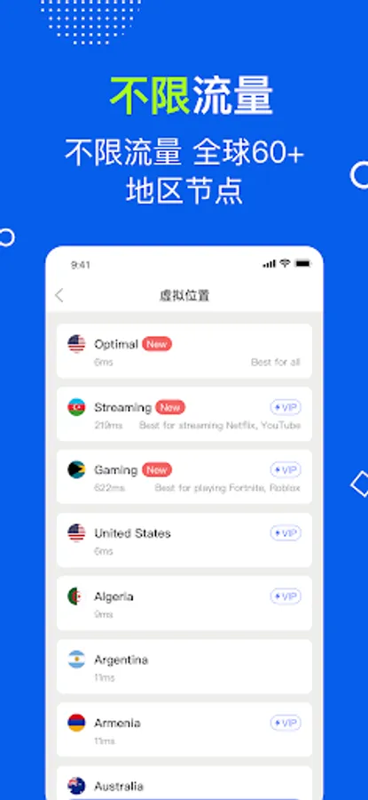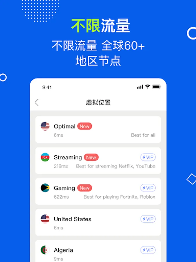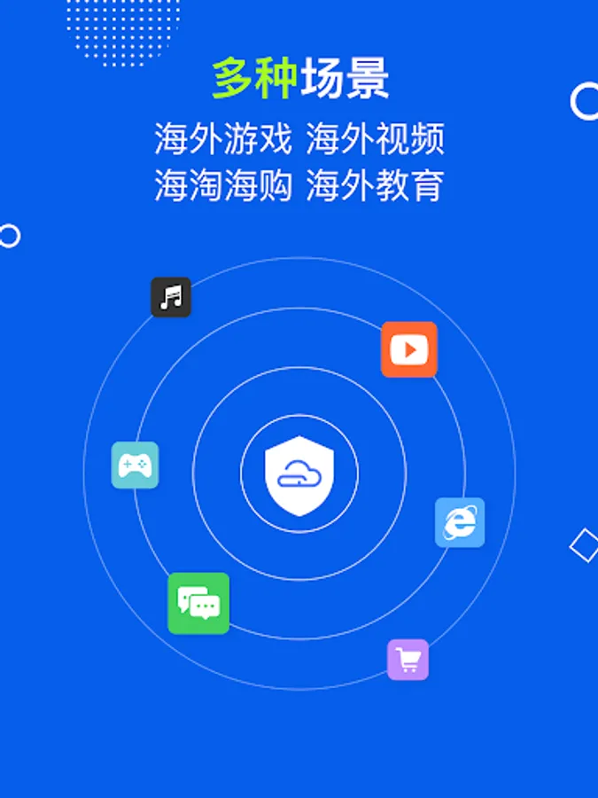 Internet access through the Feiyue Accelerator, all your network data is encrypted and transmitted by a high-level encryption protocol, and your web browsing, overseas games and video viewing are accelerated through international lines and more than 60 regional nodes.