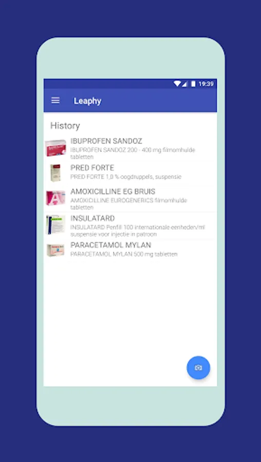 Leaphy keeps a history of the last 10 scans. The leaflets in the history can also be consulted offline.