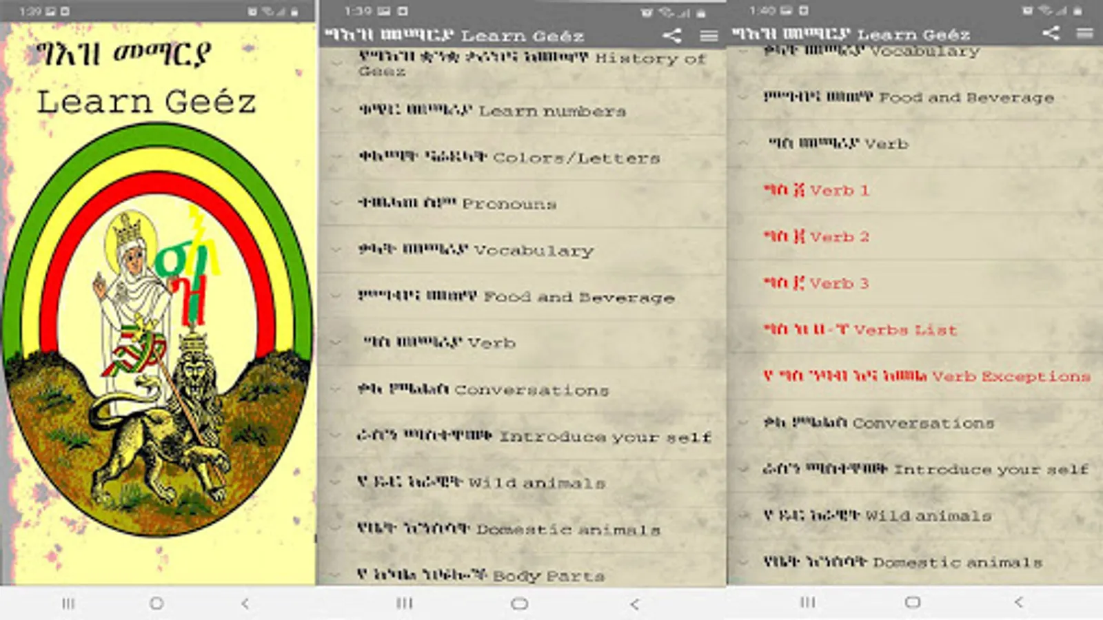 ይህ ግእዝ መማርያ መተግበርያ ነው፡፡ የ ግእዝን ቋንቋ በቀላሉ ለመማር የሚያስችል ሆኖ የተሰራ ሲሆን የቀን ከ ቀን መግባቢያ ቃለምልልሶችን፤ የግእዝ መዝገበ ቃላት ፣ የግእዝ አኃዛትን፤ የግእዝ አኃዛት መቀየረያ፣ የግእዝ ግሶችን፤ የግእዝ ሰዋስዉ ና የመሳስሉትን ያቀፈ ነው፡፡ በቀላሉ ከዚህ አዉርደዉ ግእዝን ይማሩ፡፡ እነዲሁም መዝገበ ቃላት ና አኃዛት መቀየረያ የያዘ ነዉ።