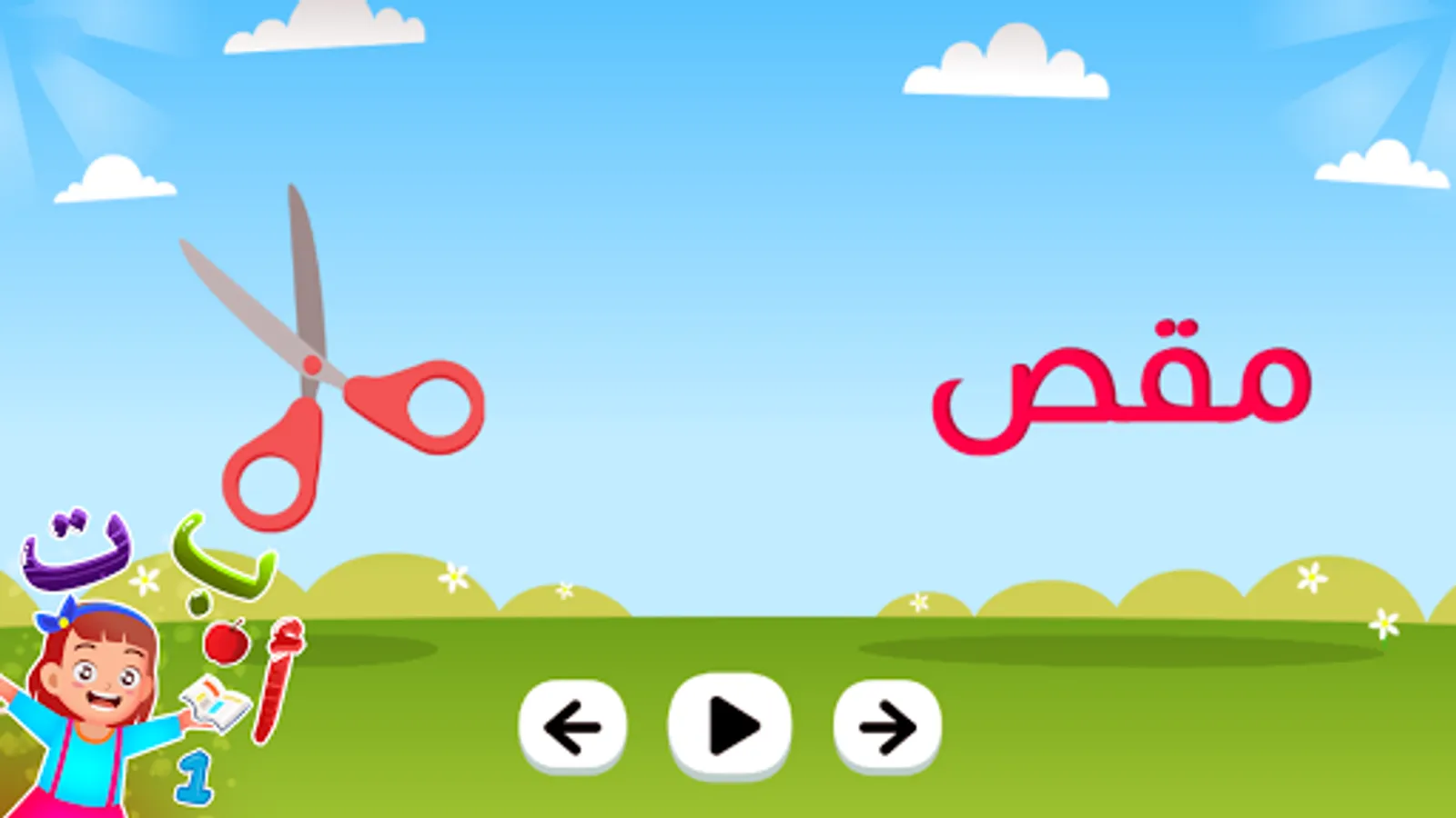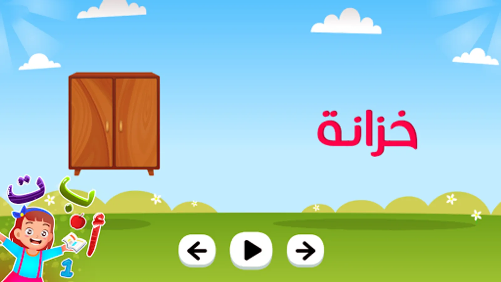 Learning Arabic for children contains Arabic teaching for children, letters, numbers, colors and words with sound and image with pronunciation.