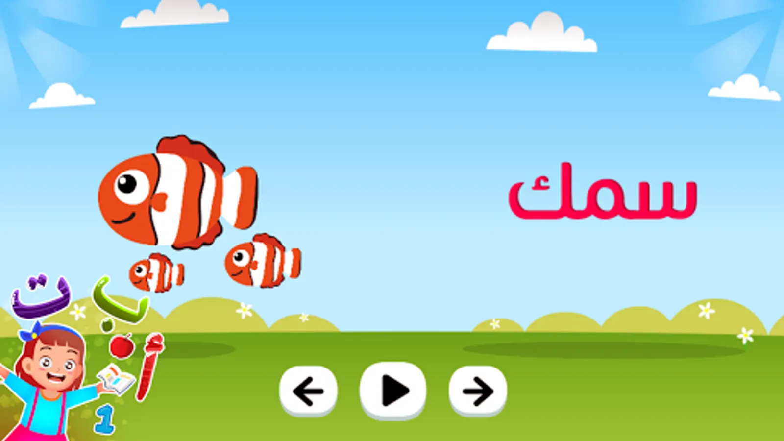 The application of teaching Arabic to children includes how to read and properly recognize letters, numbers, all shapes, colors and words without internet.