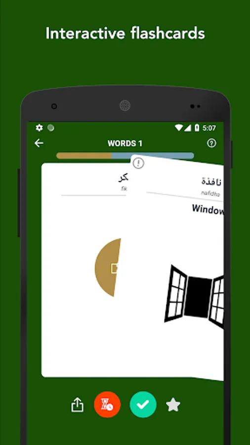 - Flip the flashcards to find out the meaning of the Arabic words.