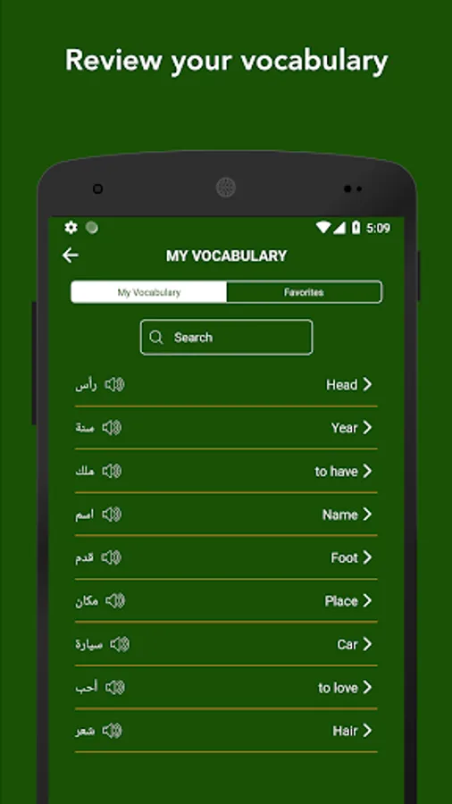 - Listen pronunciation of the Arabic words, verbs, phrases and adjectives.