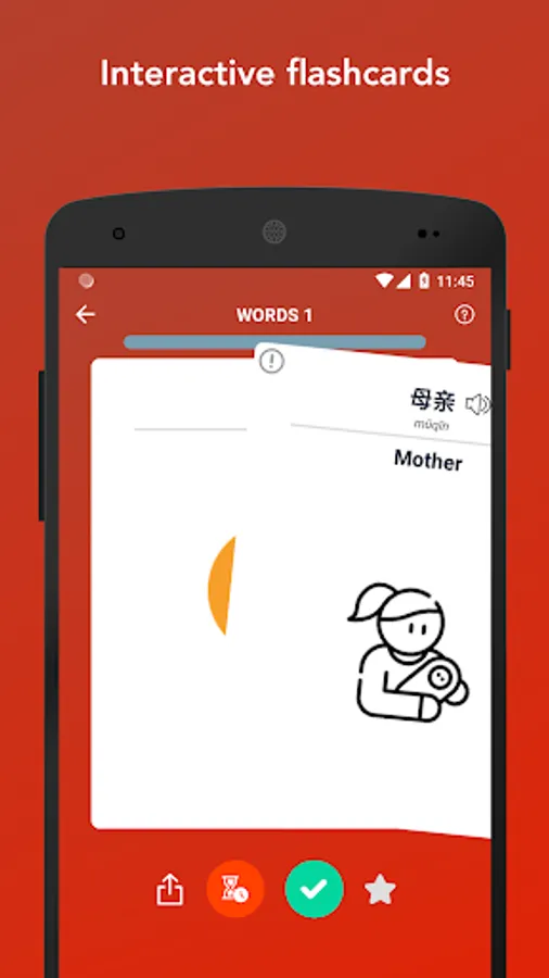 - Flip the flashcards to find out the meaning of the Chinese words.