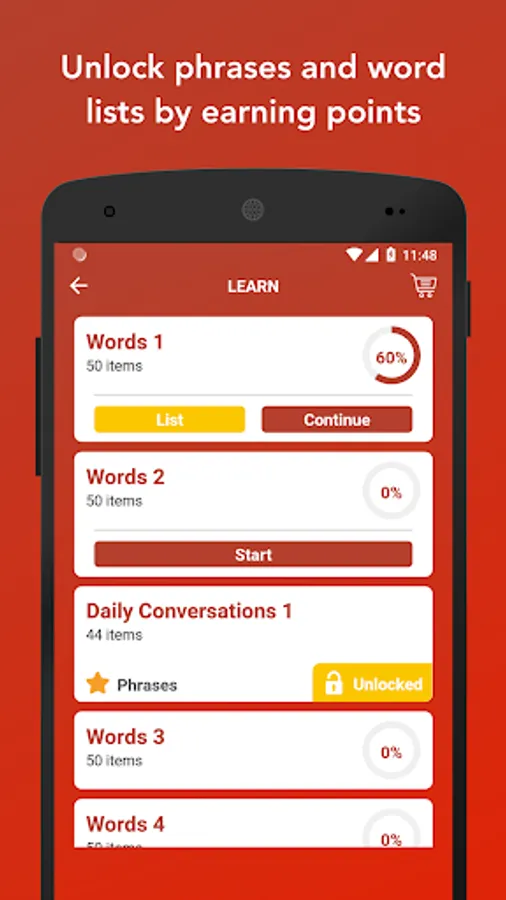 - Earn points by learning and practicing. Then unlock phrases and word lists.