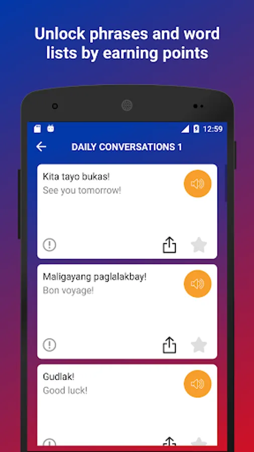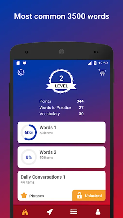- Earn points by learning and practicing. Then unlock phrases and word lists.