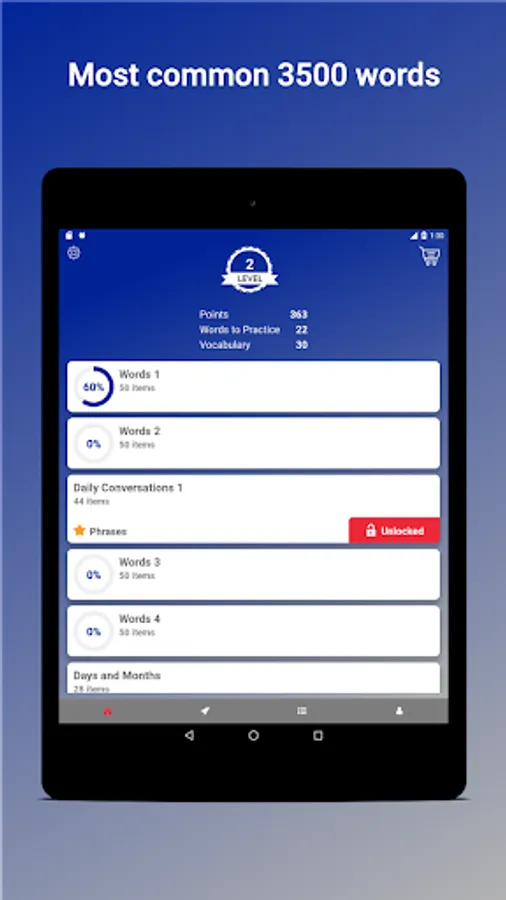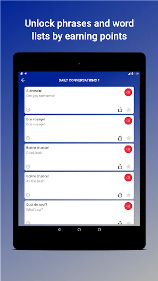 - Earn points by learning and practicing. Then unlock phrases and word lists.