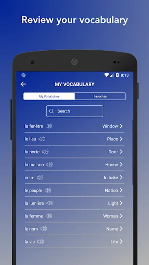 Learn 3500 French nouns, adjectives, articles and verbs to enrich your vocabulary. Memorize most common French words. Listen pronunciation of the words. Learn with word games, phrases and word lists. Use flash cards to master frequently used, core vocabulary.