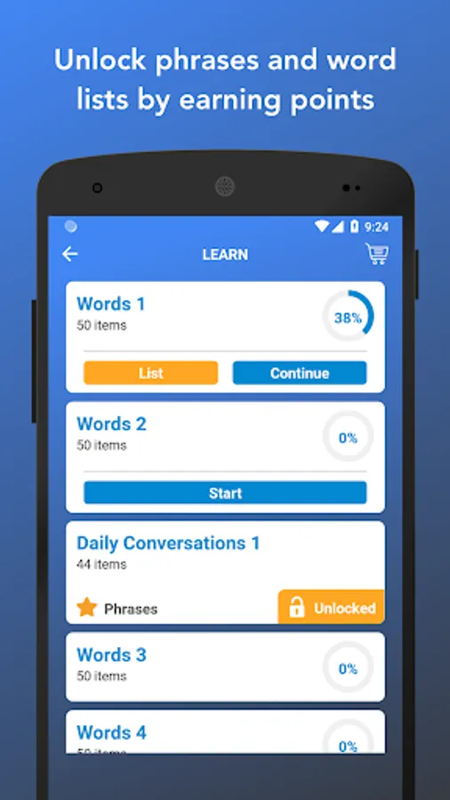 - Earn points by learning and practicing. Then unlock phrases and word lists.