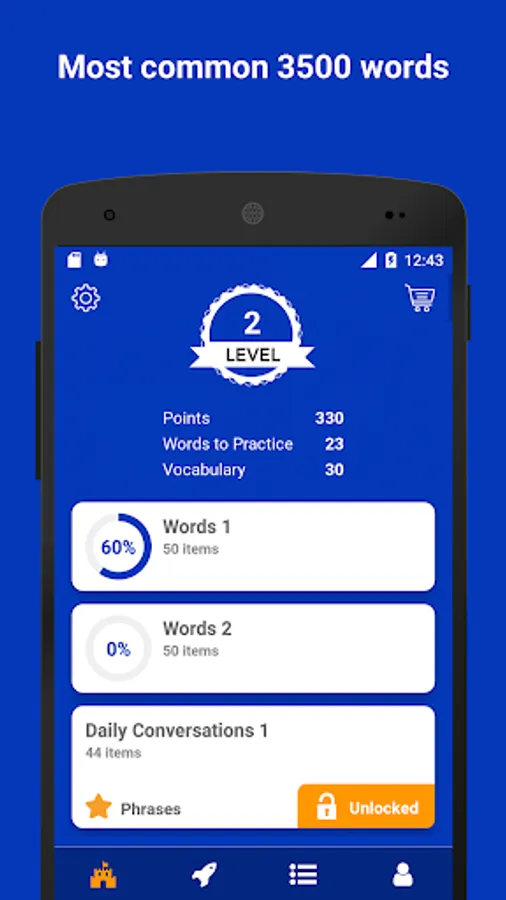 - Earn points by learning and practicing. Then unlock phrases and word lists.