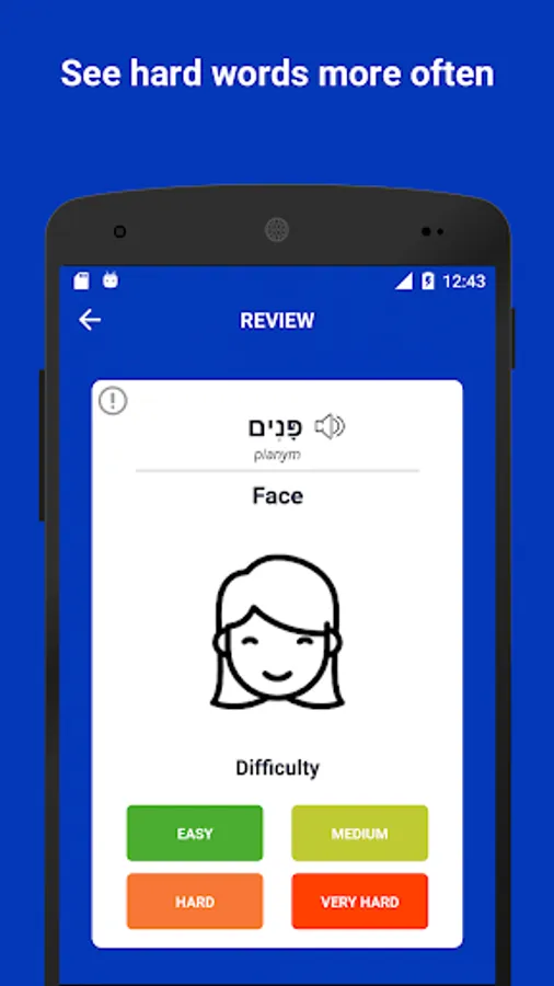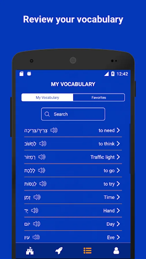 Learn 3500 Hebrew nouns, adjectives and verbs to enrich your vocabulary. Memorize most common Hebrew words. Listen pronunciation of the words. Learn with word games, phrases and word lists. Use flash cards to master frequently used, core vocabulary.