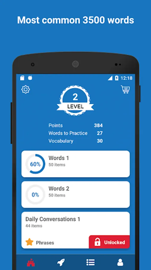 - Earn points by learning and practicing. Then unlock phrases and word lists.