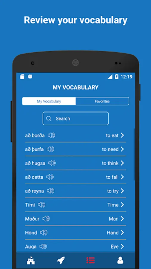 Learn 3500 Icelandic nouns, adjectives and verbs to enrich your vocabulary. Memorize most common Icelandic words. Listen pronunciation of the words. Learn with word games, phrases and word lists. Use flash cards to master frequently used, core vocabulary.