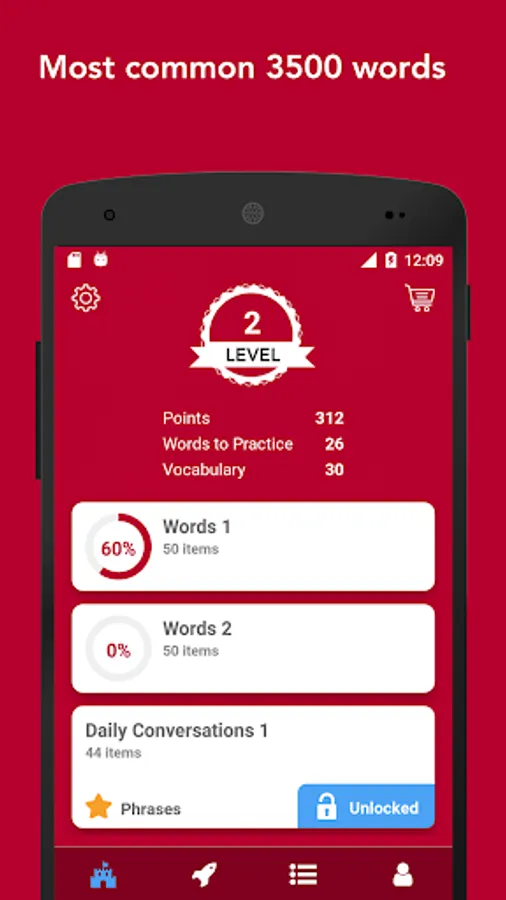 - Earn points by learning and practicing. Then unlock phrases and word lists.