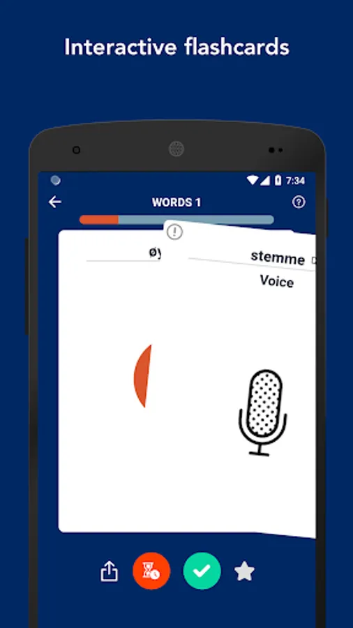 - Flip the flashcards to find out the meaning of the Norwegian words.