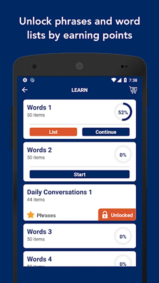 - Earn points by learning and practicing. Then unlock phrases and word lists.