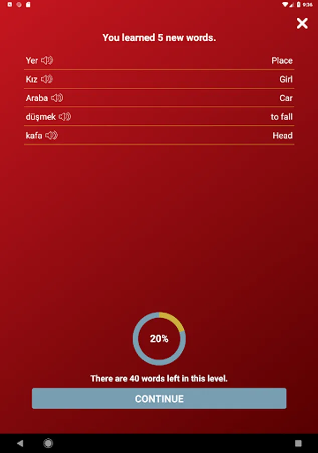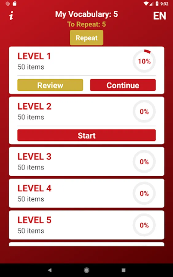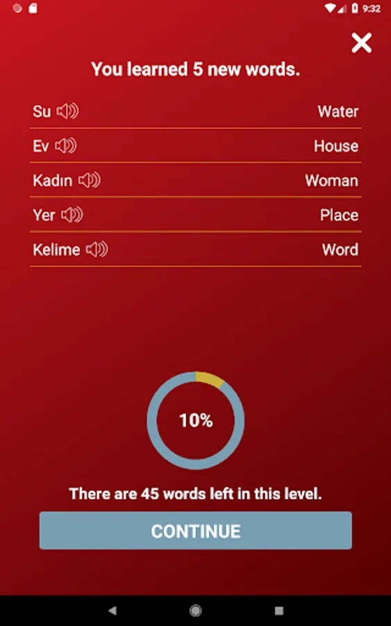 - Unlock Phrasebook and word lists as you progress for several topics.