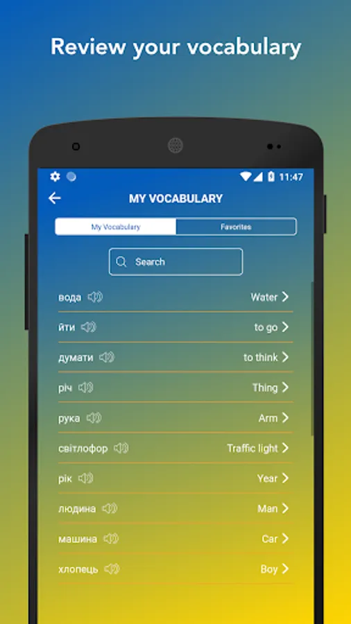 Learn 3500 Ukrainian nouns, adjectives and verbs to enrich your vocabulary. Memorize most common Ukrainian words. Listen pronunciation of the words. Learn with word games, phrases and word lists. Use flash cards to master frequently used, core vocabulary.