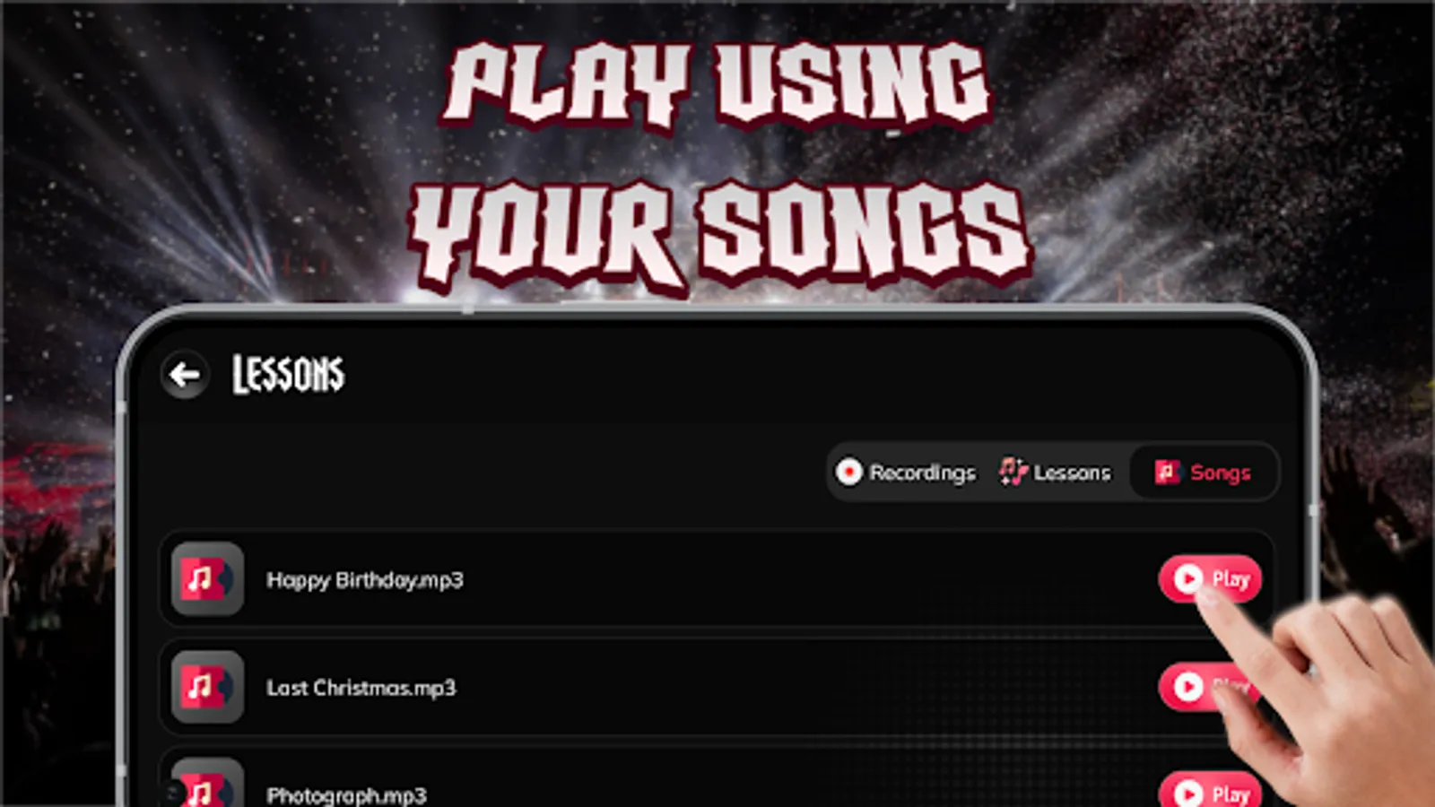 Practice, record your performance and share with friends or post on social platforms. Show off your drumming skills to the world!