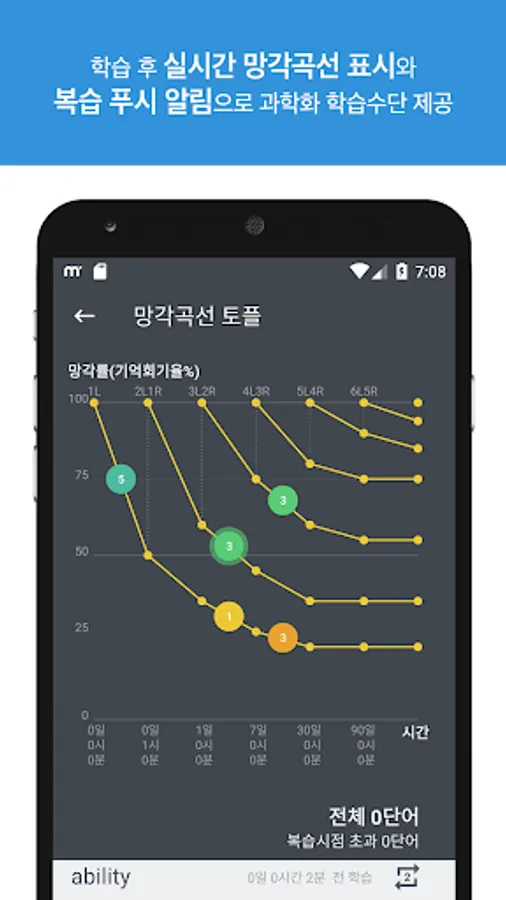 ● 암기된 단어의 망각진행률을 실시간으로 표시