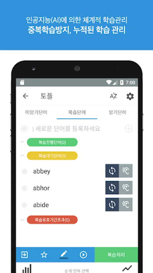 ● 단어 중복검출 기능을 통해 중복단어를 제외하고 누적된 학습 관리
