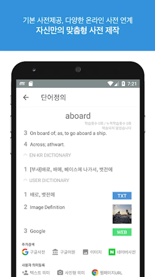 ● 단어에 대해 자신이 스크랩한 의미나 웹페이지URL, 사진촬영 , 이미지를 등록하여 사전을 제작