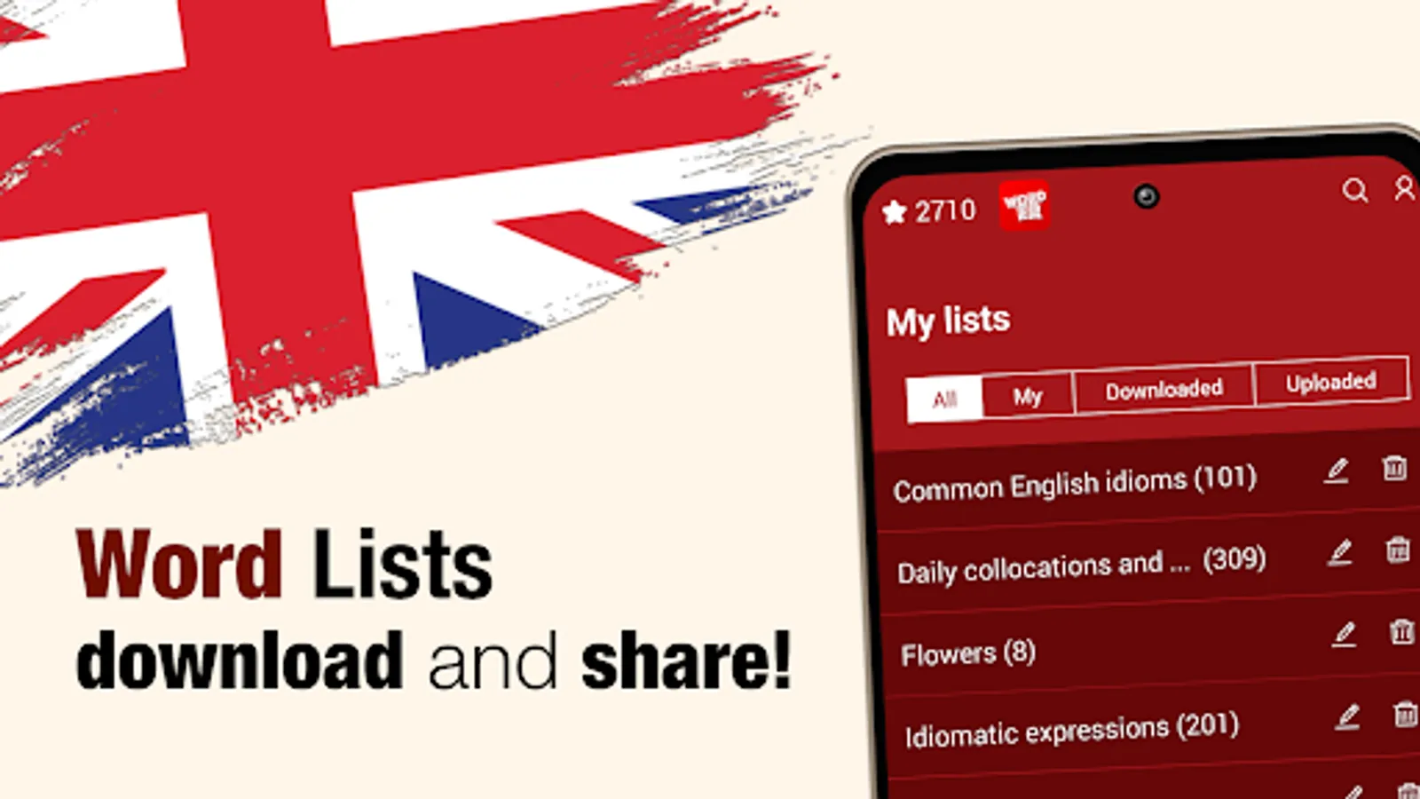 Users can save words in order to recap them afterward. We also provide ready word lists which users can download and use for free.