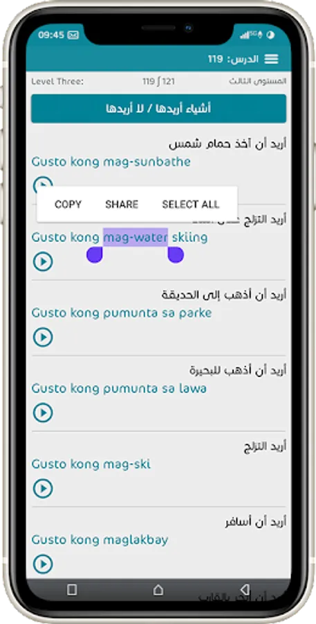 Before the trip, the best preparation you can do is learn some Tagalog words. This Tagalog language learning app will provide you a better experience during your travels. Start learning Tagalog today. Click any of the app's 121+ free Tagalog lessons of variety, including the most frequently used words and phrases in everyday life, to start your journey of communicating in Tagalog.