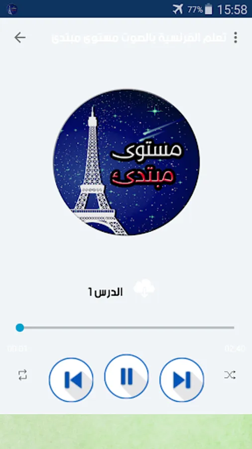 The application of learning French with sound without the Internet is an application that contains 50 audio lessons to learn English, which includes several conversations to facilitate the reception. It also contains simple and serious ways to communicate in addition to pronouncing words. It is also intended for children and adults with translation