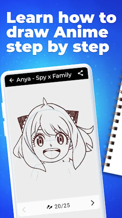 Choose your friend favorite character from Demon Slayer SPYxFamily and start learning how to draw it. You can search for any character drawing in the app and get step-by-step tutorial lessons. The app helps you learn to draw anime quickly. After finishing your drawing, gift the self-drawn picture to your loved one and make their day special.