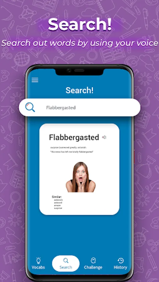 Learn & remember English Vocabulary words and discover some new English grammar to practice your Vocabulary grammar skills. Vocabulary games for similar English words and phrases to practice & improvement. User can learn phrases and sentence from a search word that learn & remember to make practice a new word. Daily learn a new word to improve your English Vocabulary and also get detail of that word. Discover English Vocabulary words with English grammar to play and amuse yourself from language. By using this app user can improve listing and voice speaking skills. English Vocabulary trainer app has Daily test for your Infant English root grammar practice. Remind English words and Vocabulary trainer from easy English Vocabulary easily. English Vocabulary help you in word training and speaking while knowing similar English words and secure you from grammar mistakes. English learning app offer you to play similar English words test to select similar English words from MCQs.