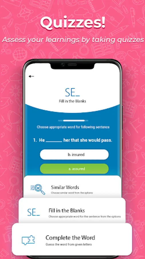 English Vocabulary trainer allow you to try vocabulary notebook test or quiz to complete the English sentences. Use test vocabulary & remember app with amazing eye catching different themes. Quiz challenge for fill in the blank to improve grammar skills with English Vocabulary trainer practice. Free English grammar trainer app with a lot of similar English words for same language and help you to learn & remember a language. Many similar English words practice and understand sentences. Vocabulary trainer app help you to frequently told and understand Infant English root verb phrases easily. Get advance Vocabulary verbs and phrases according to your search and help you to learn & remember difficult words by vocabulary builder free. You can be able for competitive quiz and improve your grammar skills. Easy to understand and identify verbs and grammar sentences from Vocabulary app.