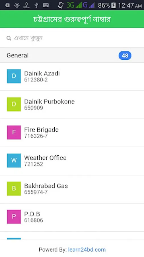 Chittagong Contacts application will offer you all important contact numbers of Chittagong in different services and organizations.