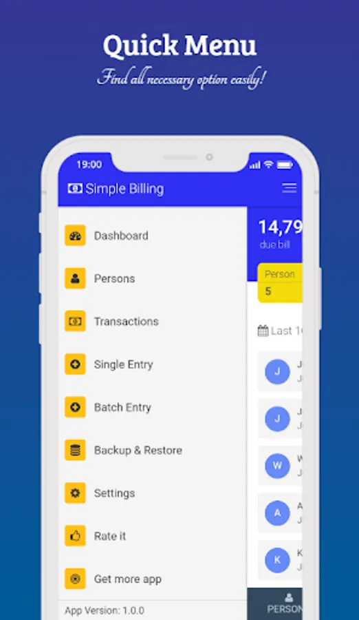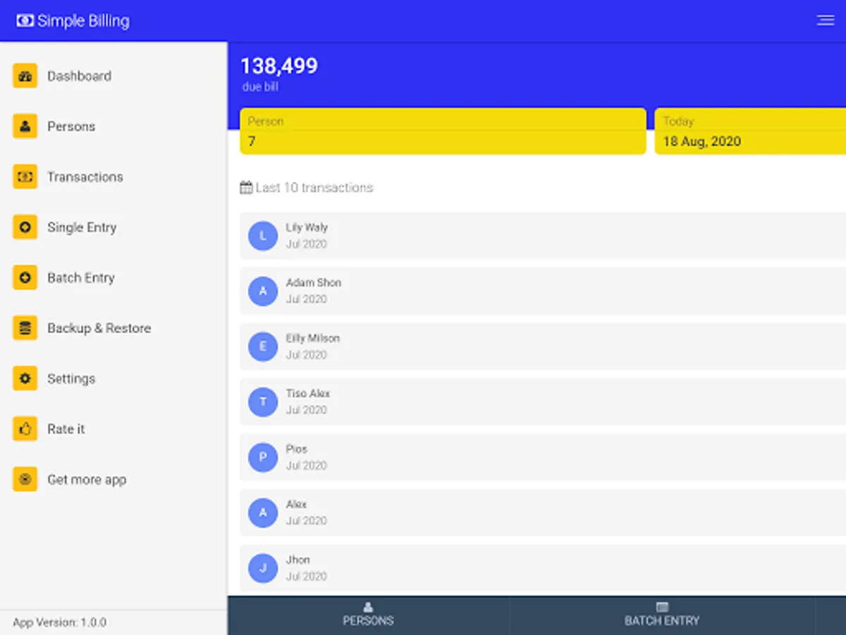 Simple Billing is a free monthly billing android app for managing your monthly billing businesses like House, Shop, Showroom, Godown, Warehouse, ISP, Cable TV, Others. Using this app you can easily manage your monthly billing in a simplistic way.
