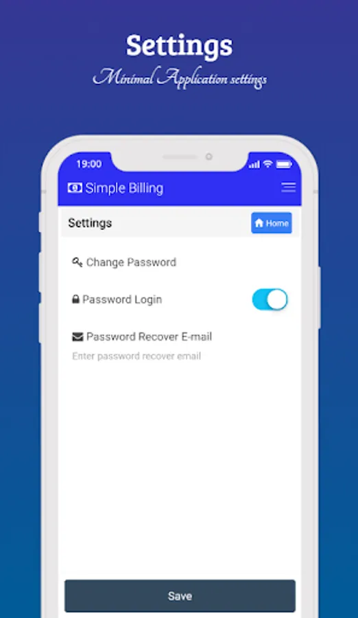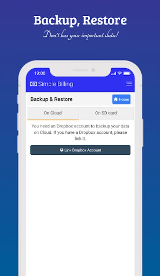 The Simple Billing app gives you an option to backup your data on your device. Your data on your device no need to worry about your data security.