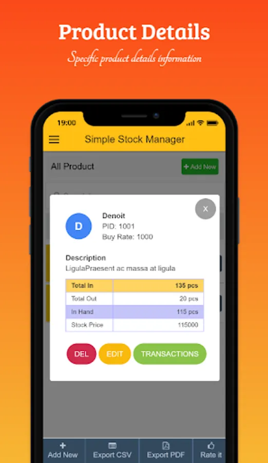 You can manage your product & transaction data at any time. You can insert new data, edit and delete your data according to your need.