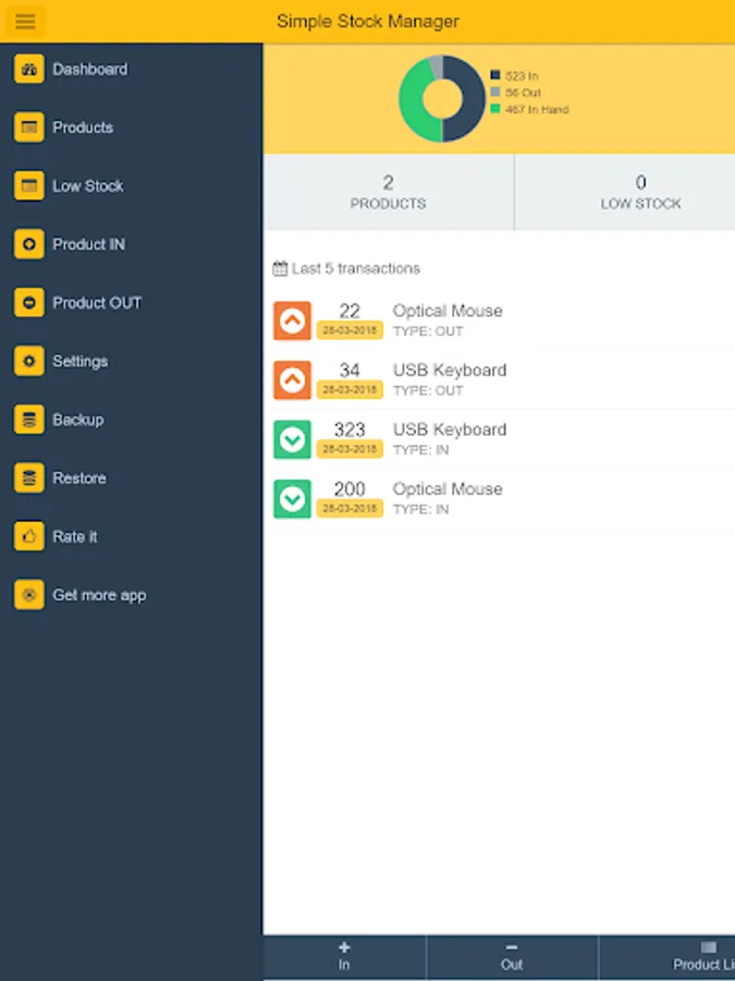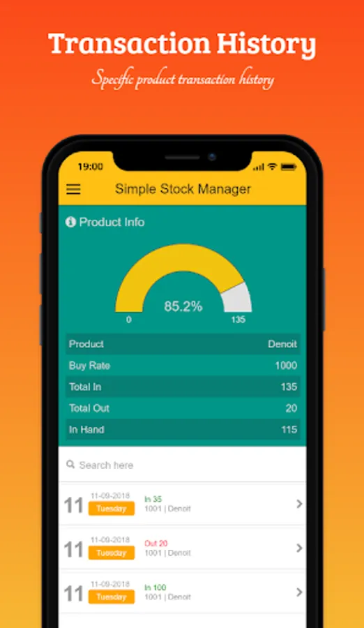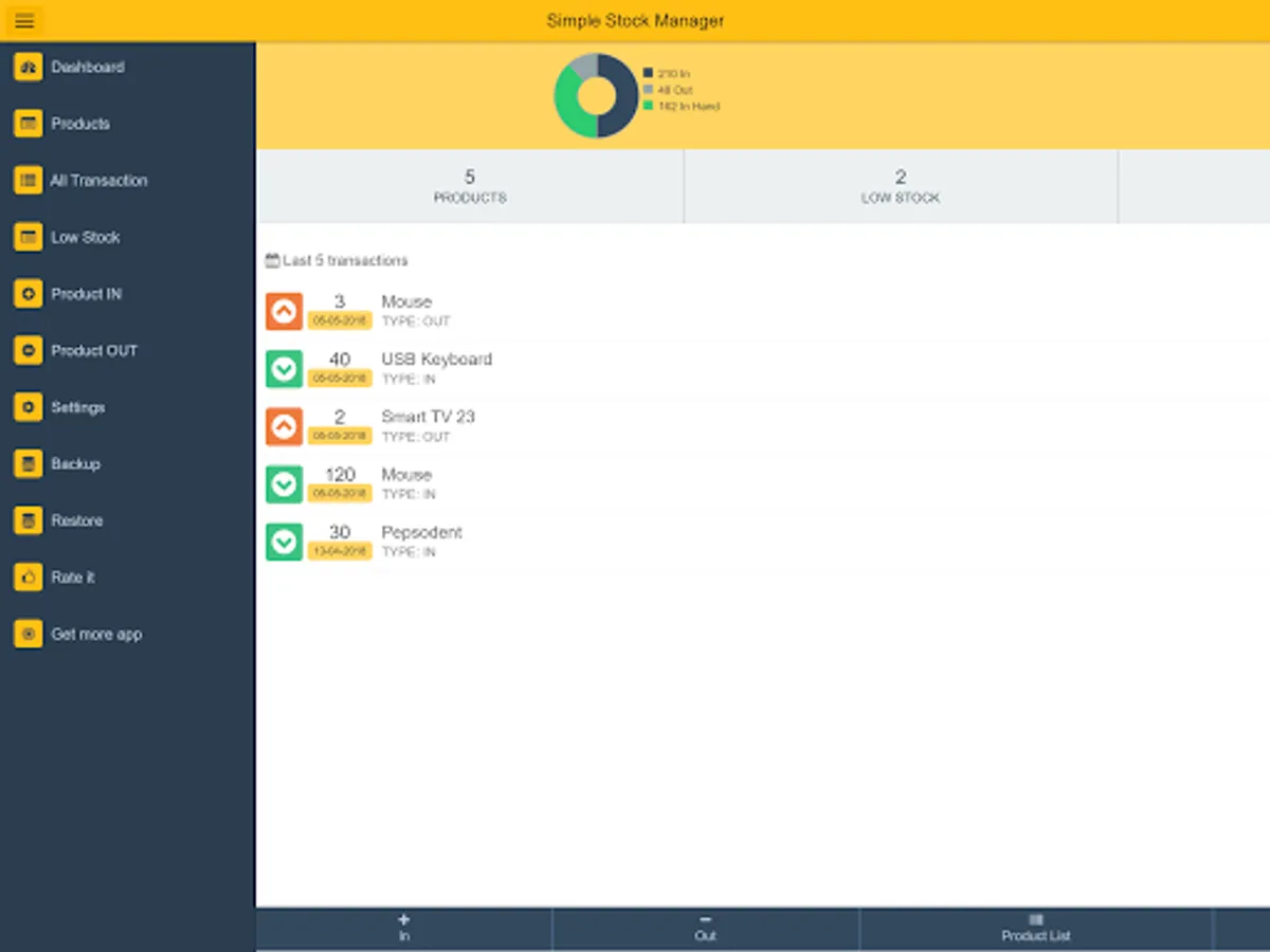 Our application offers you to manage your product stock & inventory in a simplistic way. Just list product, an entry in-out record of product transactions just it. It will provide all of the histories of the transaction report & more features