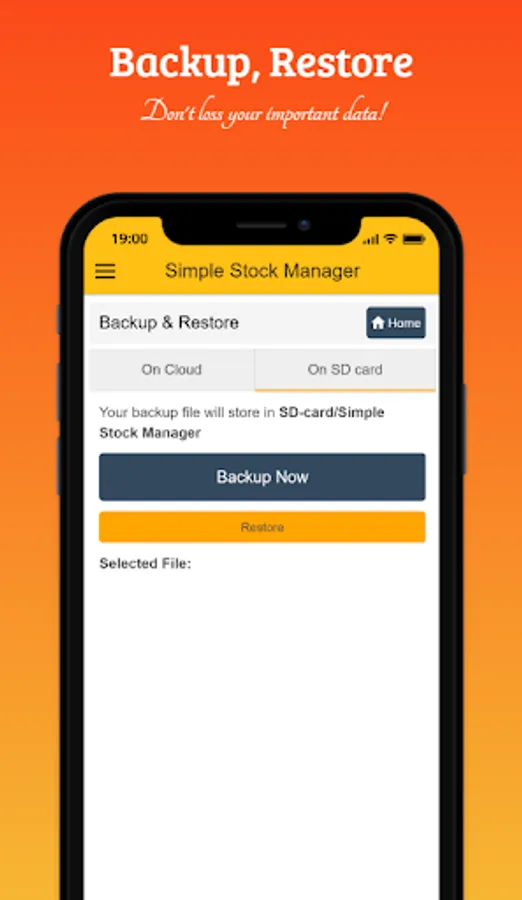 The Simple Stock Manager app gives you an option to backup your data on your device. Your data on your device no need to worry about your data security.