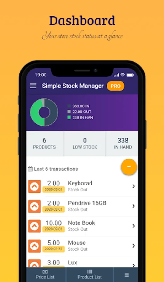 Simple Stock Manager Pro is a simple android app for managing your product stock & inventory control with profit calculation, price list and more. Using this app you can easily see your product store status, daily, weekly, monthly profit status and it provides stock-tracking and inventory management most simplistic way.