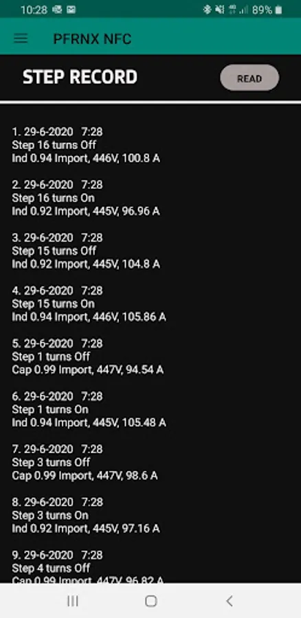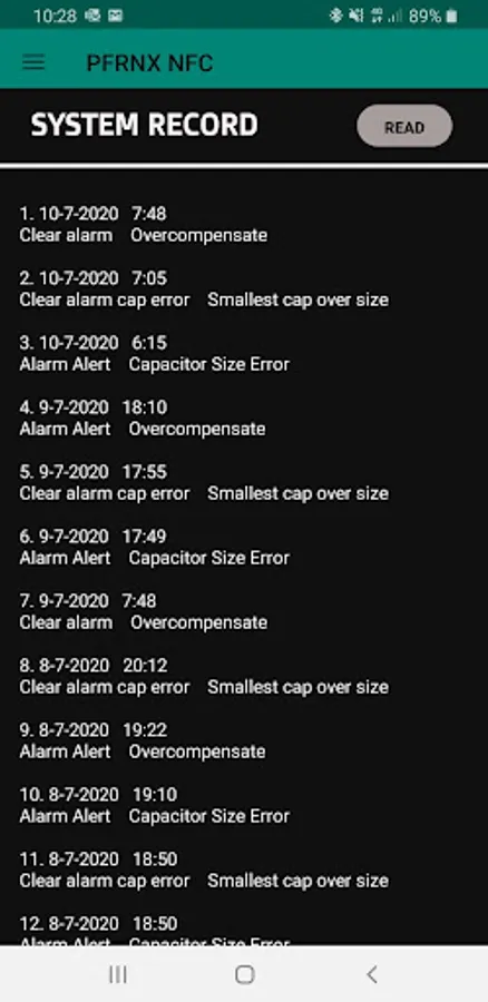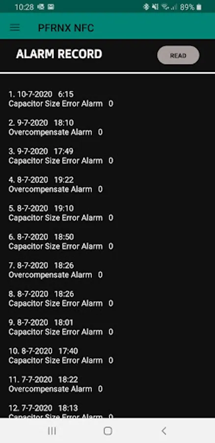 Using mobile phone retrieve data from PFRNX device through NFC.