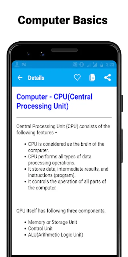 This Computer course app completely working with offline FREE. it's an easy way to learn Computer Basics, Programming, Fundamental, Hardware, Software, General Knowledge, Information Technology related, Networking, Repairing, Coding and Advanced concepts from this app.