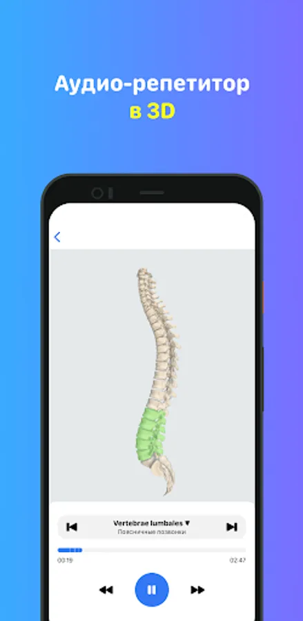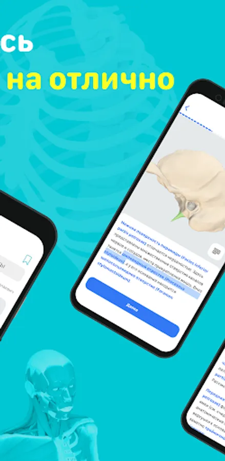 Did you see an unfamiliar anatomical formation? Click on it and an illustration will open, where it is highlighted in the picture with a color, not an arrow. No more pushing the book away and pulling out the atlas - all in one place.