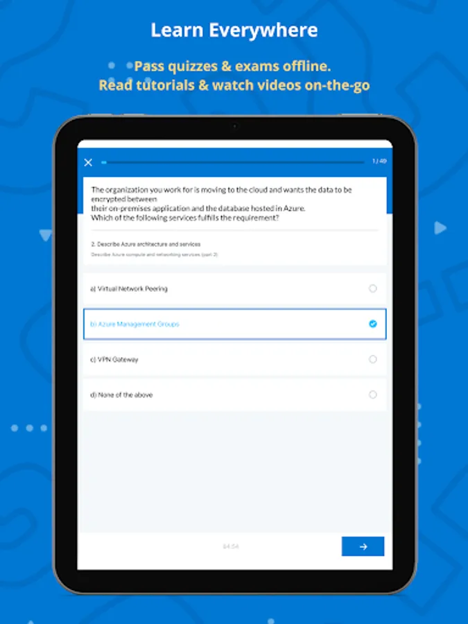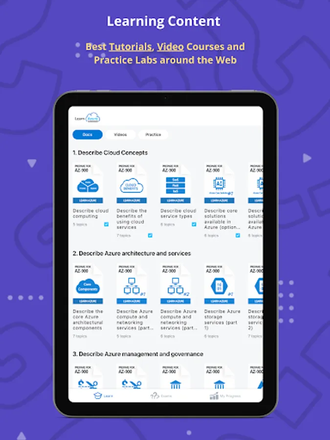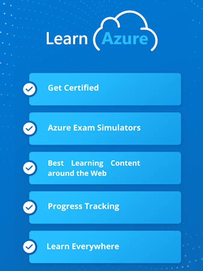 Learn Azure is an app which helps you to become Microsoft Azure Certified Professional from fundamentals, to role-based and expert level. Learn Azure is an “always here” assistant in boosting your Azure skills from any level of experience.