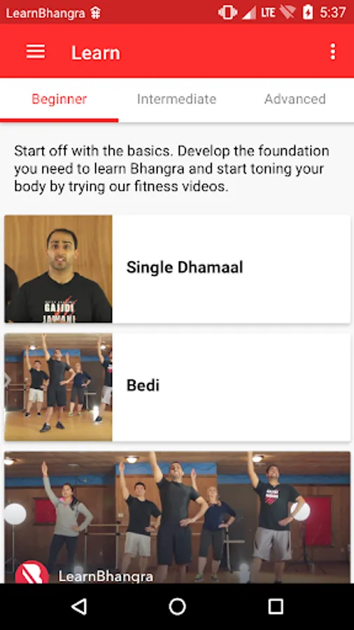 You'll progress at your own pace through our instructional videos and complete challenging workouts that piece all the steps together. Through the app, you'll learn how to do Bhangra and if you're ready to take it to the next level, you can download "The Bhangra Workout," a high intensity 30-day workout plan.