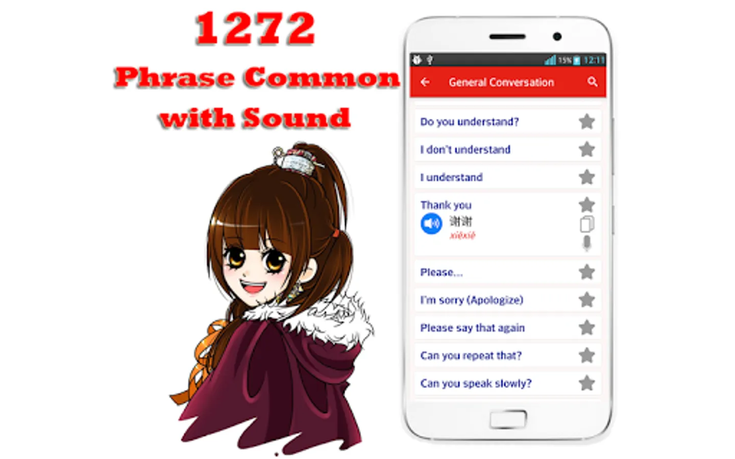 Learn Chinese Mandarin offline has 1272 common phrase in Chinese Mandarin language free with sound and you can use all of them without network. Very useful for you learn and go to tralvel to the world. Learn Chinese Mandarin grammar is very easy!