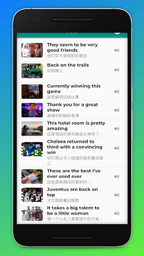 AlsoSpeak allows you to learn English effortlessly. All sentences in the application are carefully selected from social networks. Most sentences are accompanied by pictures, making learning fun and enjoyable.