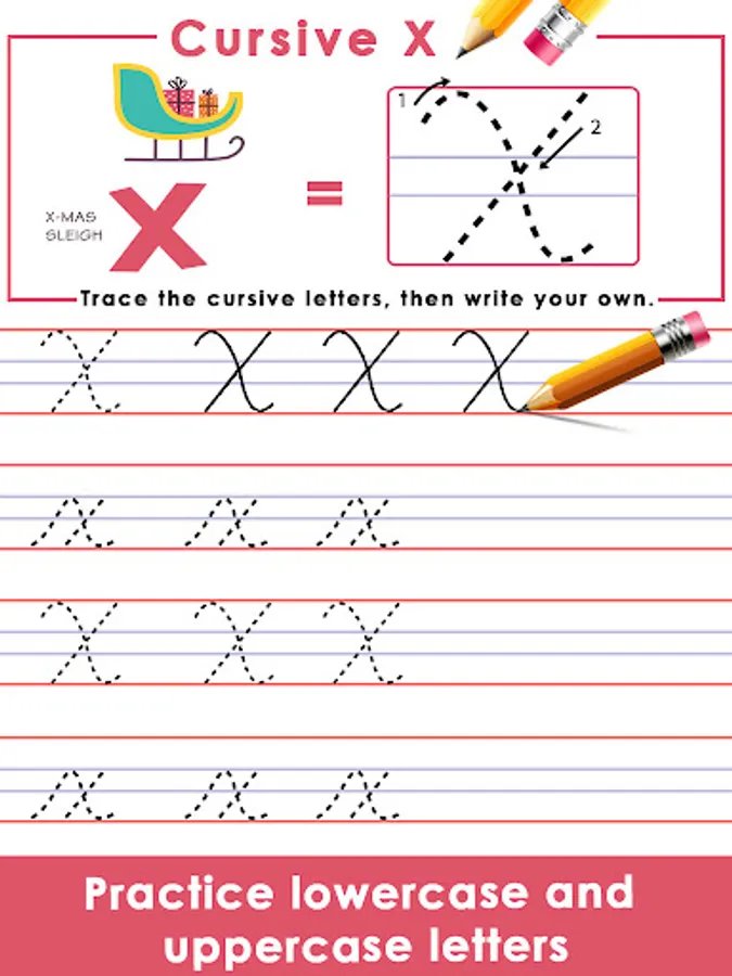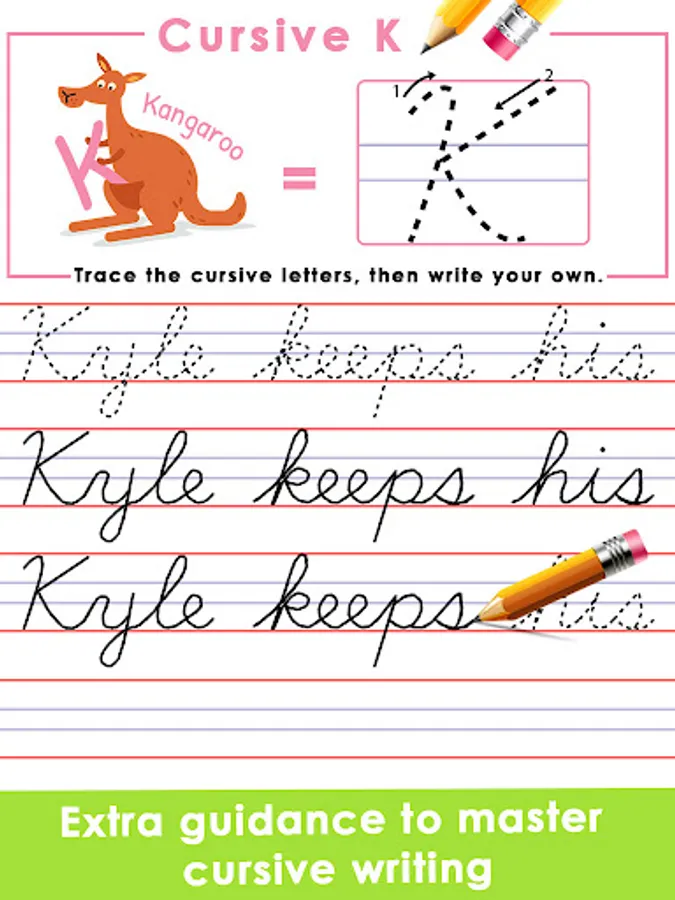 Practice cursive letters A-Z with our cursive handwriting learning app. From A to the mysterious cursive Z, kids of every age get the extra guidance they need to master their letters. These worksheets are handy for giving kids a quick reminder on tricky letters.