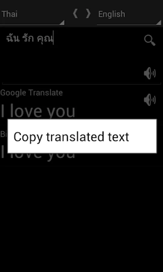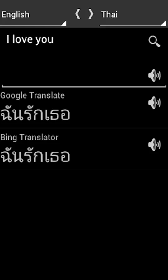 - Text-to-speech functionality (to hear a native speaker’s pronunciation) for both English and Thai word